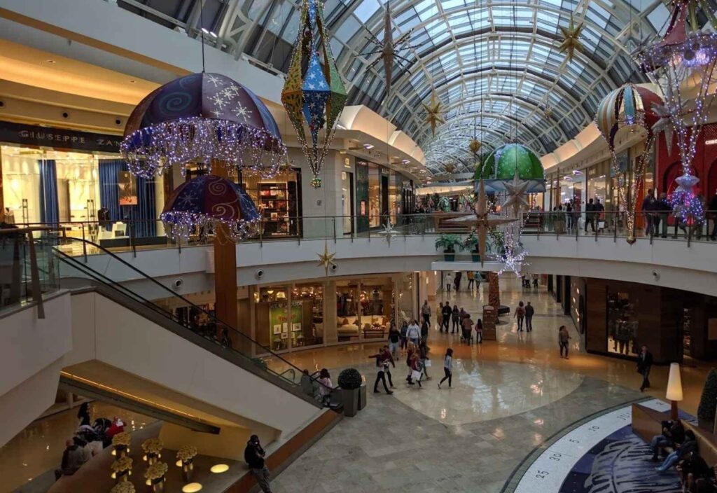 Cinco grandes almacenes (entre ellos, Nordstrom, Bloomingdale’s y Macy’s) y más de 300 tiendas de renombre como SKIMS, Aritzia, Anthropologie, Alo Yoga, Charlotte Tilbury, Lacoste, Nike, Ralph Lauren, Sephora y una tienda Zara de dos plantas.
