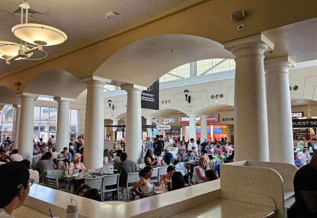 El diseño del outlet es amplio, limpio y agradable para caminar. Sus pasillos al aire libre, sus jardines cuidados y sus zonas de descanso lo convierten en un lugar perfecto para pasear mientras disfrutas del clima de Florida. Además, cuenta con opciones gastronómicas para recargar energía, desde restaurantes rápidos hasta cafés perfectos para una pausa entre compras.